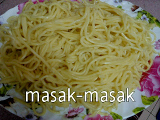 Mee kuning dibasuh dan dicelur kemudian ditoskan.